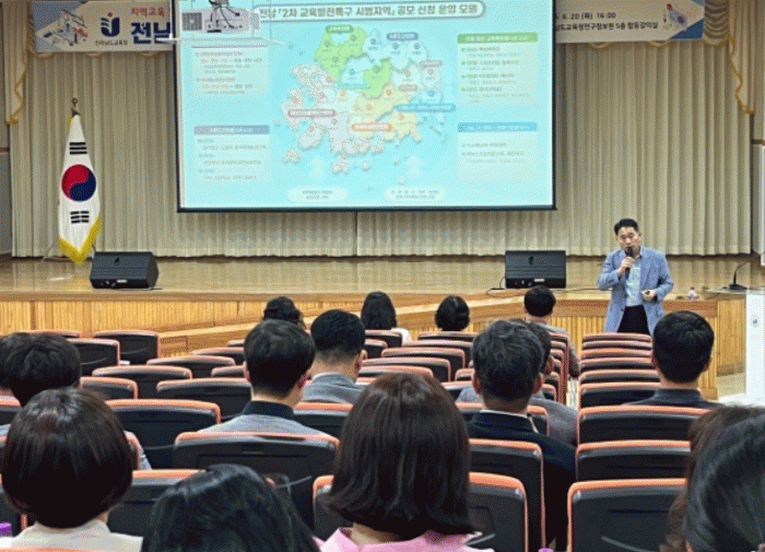 교육발전특구 2차 공모를 위한 기획안을 공유하고 현장의 의견을 청취하기 위해 마련된 이날 공청회에는 도교육청 및 전남도청 관계자, 3유형 14개 공모 신청 지역 지자체 및 교육지원청 관계자, 교원, 학부모, 민관산학 위원 등 120여 명이 참석했다.