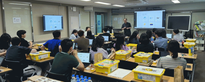 23일 교육연구정보원에 따르면, 이번 워크숍은 7월 실시되는 ‘AI정보영재캠프’에서 활용되는 로봇 교구를 강사들이 사전에 체험하고 활용법을 숙지하기 위해 기획됐다.