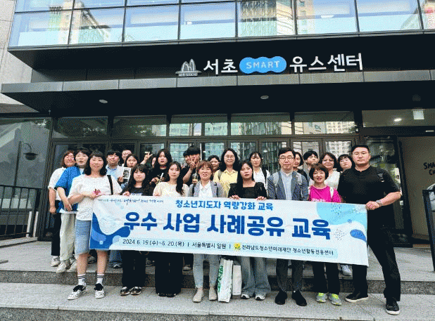 교육에 참가한 전남도 청소년지도사 28명은 서초스마트유스센터, 시립문래청소년센터, 가재울청소년센터 등 세 개의 청소년기관을 방문하여, 각 기관의 우수사업과 청소년활동 운영 노하우를 직접 경험하고, 벤치마킹하는 소중한 시간을 가졌다.