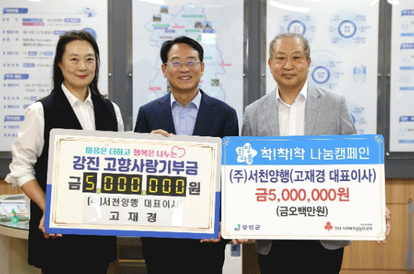 고재경 대표이사는 “고향사랑기부제와 희망나눔 캠페인을 통해 추억이 가득한 선친의 고향 발전에 기여할 수 있어 뜻깊다”며 “의미있는 기금사업으로 주민이 행복하고, 찾고 싶은 강진을 만들어 달라”고 밝혔다.