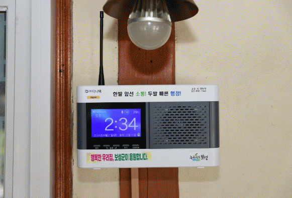 ‘최첨단 마을방송 댁내 수신기’는 녹음 기능이 있어 미처 듣지 못한 방송도 최대 10개까지 다시 들을 수 있으며, 양력과 음력, 시간, 온도 등의 다양한 편의 기능도 제공한다.