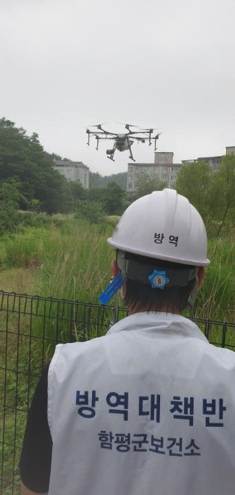 군은 감염병으로부터 안전한 건강한 지역을 만들기 위해 지난 4월부터 오는 10월까지 엑스포공원, 습지 등 취약지역에 드론을 활용해 주 2회 환경친화적인 약품을 살포한다.