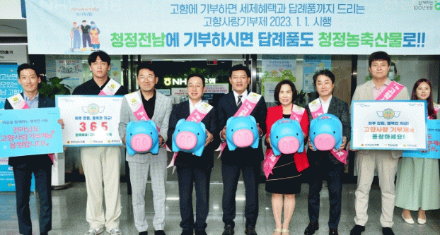 박희옥 영업부장은 “농협은 고향사랑기부제 대면수납 업무를 지원하고 있어, 고향사랑기부제 활성화와 지역사회 발전을 위한 사회공헌에 대한 책임을 느끼고 있다”며 “고향사랑기부제에 대한 관심을 제고하고 캠페인 확산을 위해 실시하는 ‘365 기부 저금통’ 이벤트에도 많은 관심과 참여를 부탁드린다”고 전했다.