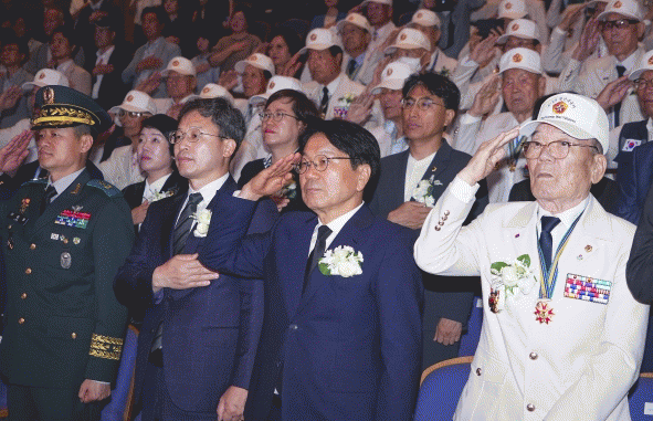 ‘이 땅, 이 바다, 이 하늘을 위해’라는 주제로 열린 이날 기념식은 UN참전국기 입장, 국민의례, 모범 유공자 표창, 기념사, 헌정공연, 6·25노래 제창 순으로 진행됐다.