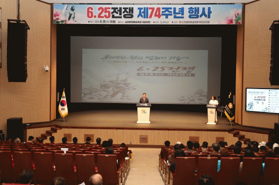 이날 기념식에는 김산 군수를 비롯하여 도의원, 보훈단체, 기관·사회단체장, 제1대대 국군장병, 공무원 등 250여 명이 참석하여 6.25 전쟁의 역사적 의의와 교훈을 되새기며 호국영령을 추모하고 참전용사의 명예를 선양했다.