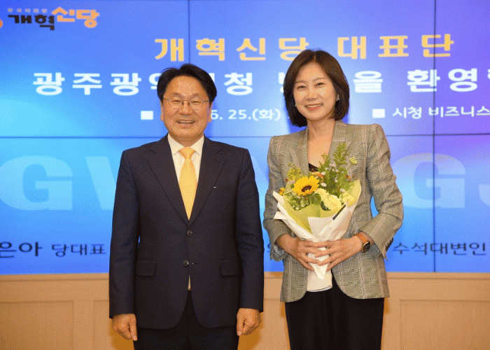 광주시와 개혁신당은 25일 오후 시청 비즈니스룸에서 간담회를 하고, 광주형일자리 등 지역 미래 먹거리 확보와 5·18정신 헌법전문수록 등에 협력하기로 했다.