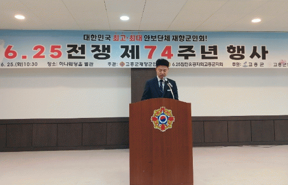 이날 행사에는 조대정 부군수, 구자형 고흥군재향군인회장을 비롯한 6·25 참전용사 및 보훈 가족, 기관단체장 등 300여 명이 참석한 가운데 참전유공자 표창, 기념사, 추모와 감사의 말씀, 6.25 노래 제창 순으로 진행됐다.