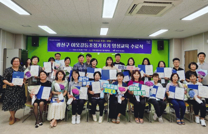 광산구 관계자는 “교육을 수료한 시민이 실전 역량을 길러 이웃갈등조정가로서 다양한 이웃 간 갈등을 조정하는 중추적 역할을 할 수 있도록 지속해서 지원할 계획”이라며 “시민 스스로 갈등 상황을 조정하고 완화하는 기반이 확산하도록 노력하겠다”고 밝혔다.