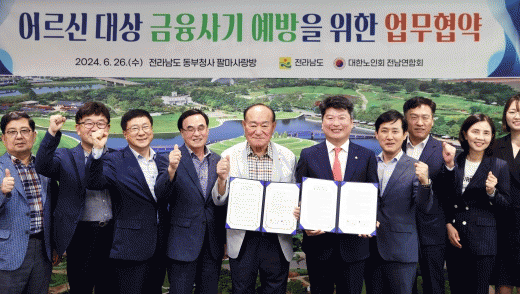 협약에 따라 전남도와 대한노인회 전남연합회는 금융사기 피해로부터 전남지역 어르신을 보호하기 위해 상호 협력체계를 갖추고 금융사기 피해 예방 교육 및 캠페인 등 활동을 추진할 방침이다.