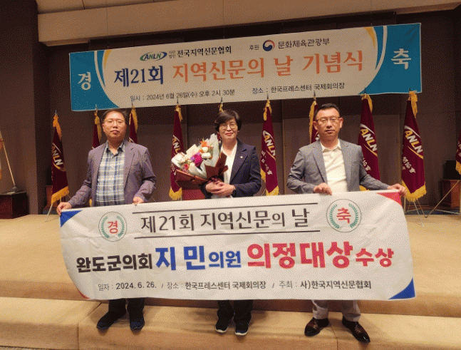 의정대상을 수상한 지민 의원은 “늘 함께해 주고 아낌없이 성원을 보내준 군민 덕분에 가능한 일이었다”며, ‘앞으로도 한결같은 마음으로 열심히 일하라는 격려로 생각하고 의정활동에 매진하겠다“고 밝혔다.