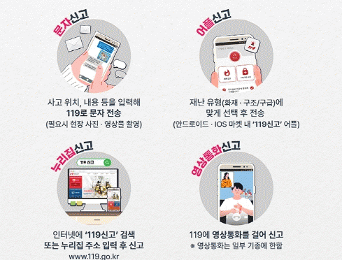다매체 119신고서비스는 재난 발생 시 음성·영상통화 외에도 문자나 119신고 어플 등 다양한 방법으로 신고할 수 있는 서비스다.