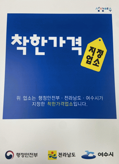 한편, 여수시는 수시로 착한가격업소를 모집 중이다. 지정 조건은 영업개시 후 6개월이 경과해야 하며, 인근 상권 평균가격 대비 가격이 저렴하고 주방·화장실 등 위생·청결도가 행정안전부 기준에 적합해야 한다.