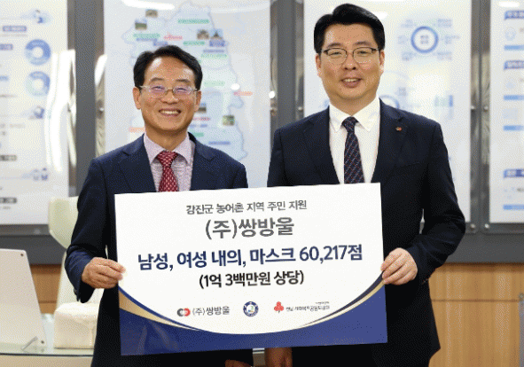 ㈜쌍방울은 지난 2022년 12월 강진군에 6,500만원 상당의 내의 및 속옷 3만8,700개를 기부했으며, 지속적인 나눔 사회공헌 활동을 펼쳐오고 있다. 이번 기부는 농어촌 지역의 어려운 이웃을 지원했다.