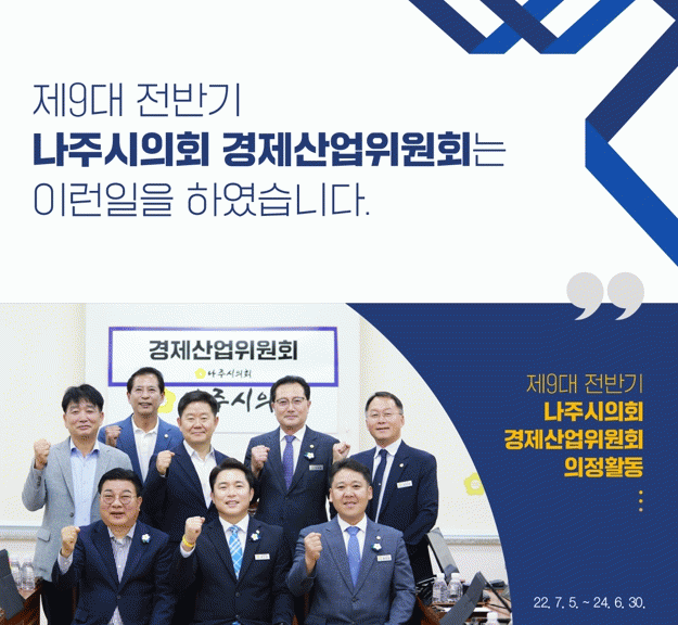박소준 경제산업위원장은 “2년여간 함께한 경제산업위원들게 감사의 말씀을 전하며 후반기에도 초심 그대로 현장에서 발로 뛰며 시민을 위한 의정활동에 최선을 다하겠다”라고 짧은 소회를 남겼다.