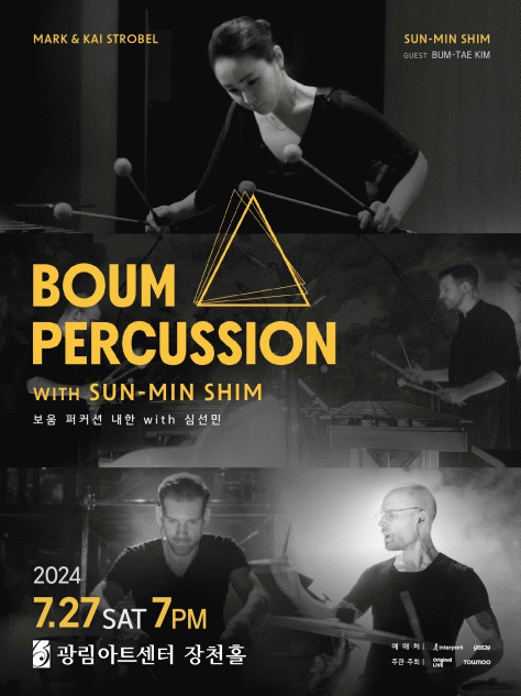 BOUM Percussion은 클래식 음악을 더 전체적인 관점으로 보여주고자 하는 열망으로 만들어진 팀으로, 2019년 제68회 ARD 음악 콩쿠르에서 1위와 청중상을 수상하고 이탈리아 국립음악원 교수로 임명된 카이 스트로벨(Kai Strobel)과 슈투트가르트 국립오페라극장 타악기 수석 연주자인 마크 스트로벨(Marc Strobel)로 이뤄져 있다.