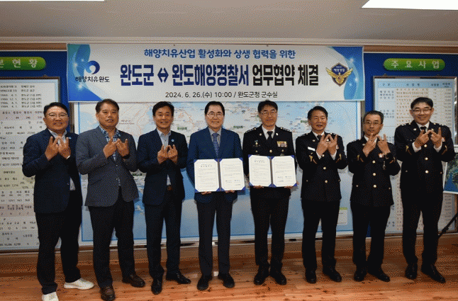 이번 협약식은 완도해양경찰서장, 완도군수 등 관계자 8명이 참여한 가운데 해양치유산업 활성화 방안을 논의하며 협력체계를 구축했다.