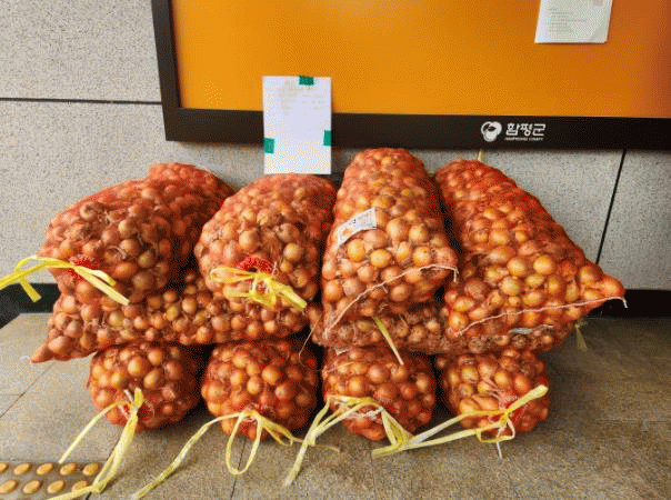 27일 해보면사무소에 따르면 아침 면사무소 현관에 양파와 편지가 놓여있는 것을 발견했다고 한다.