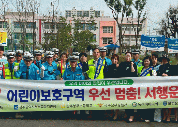 행사 참가자들은 등교하는 광주봉주초 학생들에게 교통안전 홍보 물품을 나눠줬다. 또 어린이보호구역을 통행하는 운전자들에게 교통안전에 대한 관심도를 올리고자 각종 팻말과 현수막을 활용하여 홍보했다.
