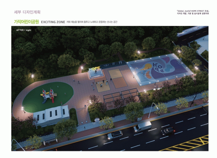 이에 따라 본격 추진될 HOPE STREET는 올해 연말 준공을 목표로 ▲공원 스팟존 3곳(가작어린이공원·비둘기공원·일곡제2근린공원) ▲거리 포토존 6곳(서일초·일곡초·일곡중·국제고·일곡·삼각마을) ▲청소년 거점센터 2곳(남도향토음식박물관·일곡중)이 조성될 예정이다.