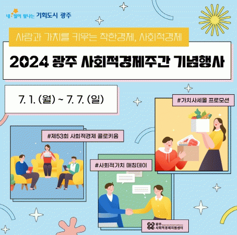 광주시 공공기관 및 의제를 제안한 단체·개인 80여명은 4일 오후 2시 광주사회적경제지원센터 커뮤니티홀에서 함께하는 사회적가치 매칭데이 ‘가치 온(ON) 같이 고(GO)’를 진행한다.