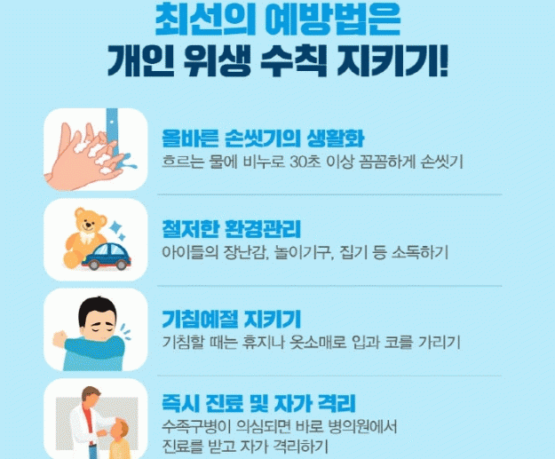 시 관계자는 “최근 급증하는 수족구병은 아직 예방백신이 개발되지 않아 올바른 손씻기, 기침예절 준수 등 예방수칙이 중요하다”며, “특히 38도 이상의 고열, 팔다리에 힘이 빠지거나 구토, 경련 등의 증상을 보이는 경우 신속히 의료기관을 방문해야 한다”고 강조했다.