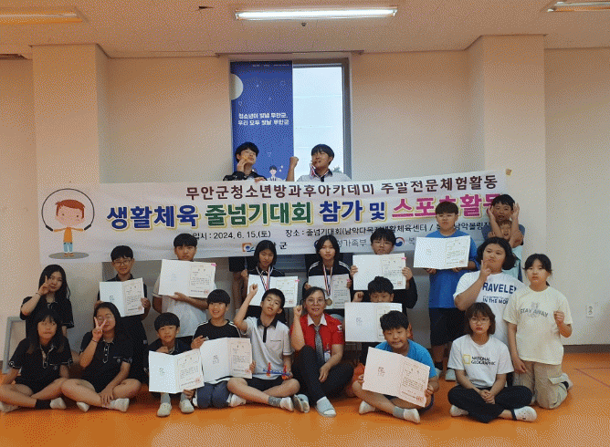 한편 무안군 청소년방과후아카데미는 음악줄넘기, 스포츠동아리 활동을 비롯한 다양한 프로그램을 운영하고 있으며 방과 후 돌봄이 필요한 관내 초등 4학년~중등 3학년 청소년들을 대상으로 현재 상시 모집하고 있다.
