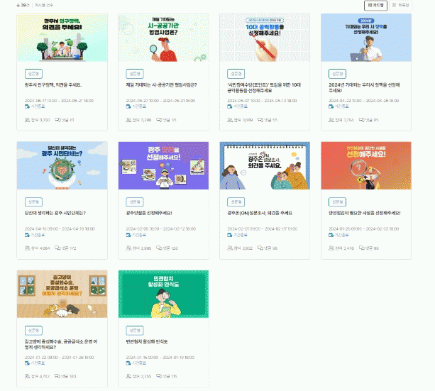 광주광역시는 ‘광주온(ON)’ 온라인 설문조사를 지난 2022년 12월 ‘가뭄 대책·물 절약 실천 관련 의견수렴’을 시작으로 2024년 7월 현재까지 38차례 진행했다.