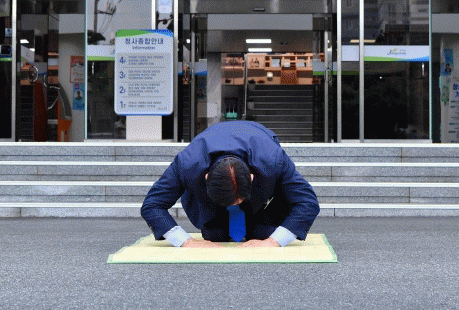 [뉴스맘]김한종 장성군수가 민선8기 후반기 첫날인 1일 오전 청사 앞에서 군민을 향해 큰절을 올렸다. ‘군민을 섬기는 군정’을 상징하는 김 군수의 큰절은 2022년 취임 이후 민선8기 출범일과 시무식 날마다 어김없이 이어지고 있다.