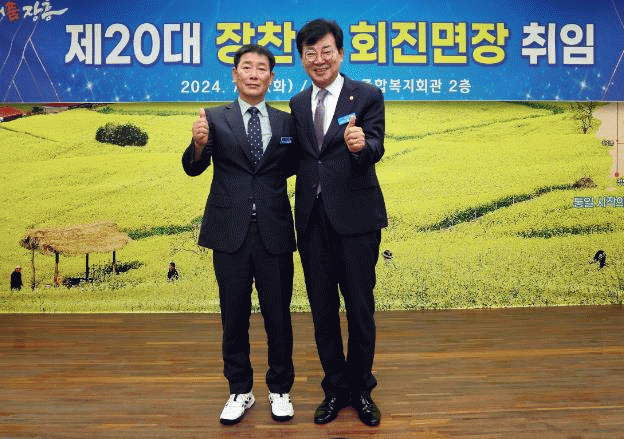 이날 취임식에 참석한 김성 군수는 운동화를 선물하며, 발로뛰는 현장행정을 강조했다.