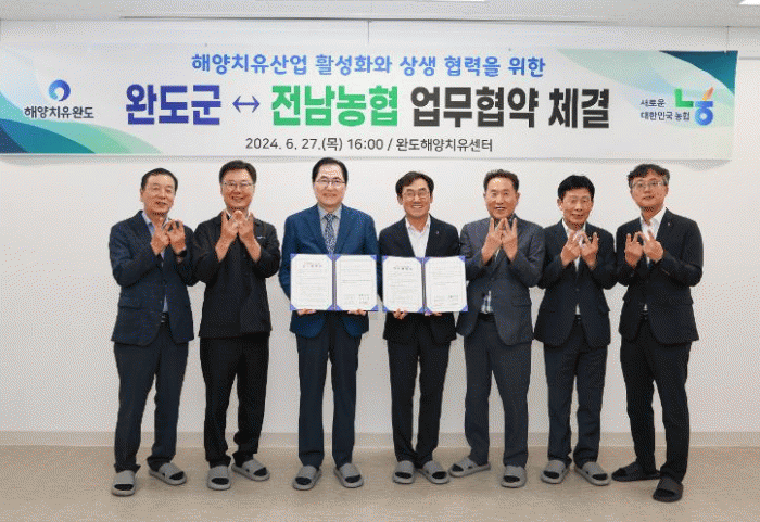지난 26일에는 완도해양경찰서, 27일에는 전남농협과 해양치유산업 활성화와 직원 복지 증진을 위한 협력 체계를 구축하고자 업무 협약을 체결했다.