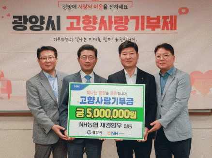 이번 기부는 지난해 4월 NH농협 재경향우 13명이 고향사랑 기부에 참여하여 500만원을 기탁한 것에 이어 올해도 뜻을 모아 고향사랑 기부에 동참한 것으로 시행 2년 차인 고향사랑기부제 확산 의지를 다지며 광양을 응원했다.