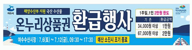 이에 따라 여수수산시장에서 수산물을 구매하면 1인당 구매금액의 최대 30%, 2만 원까지 환급받을 수 있다.