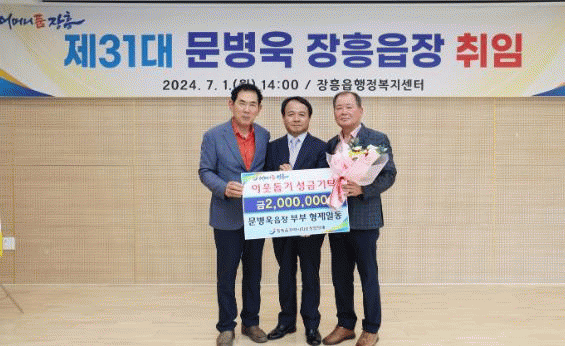 문병욱 읍장은 “소외된 계층 없이 모두가 행복한 장흥읍이 되길 바라는 마음으로 가족들과 함께 성금을 전달했다”며 “앞으로도 지역사회를 위한 나눔 실천을 이어가겠다”고 전했다.