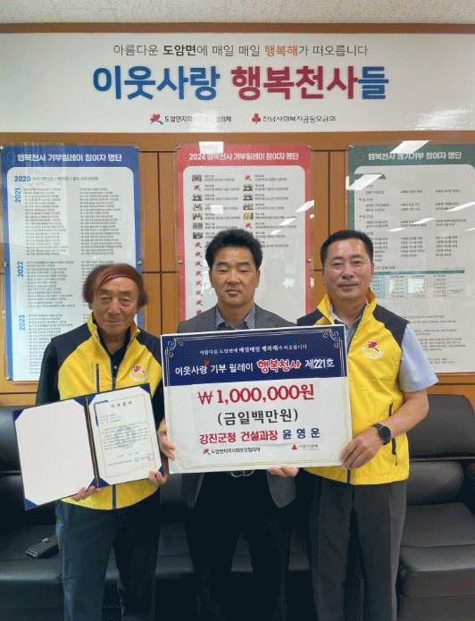 윤해성 도암면지사협위원장은 “윤영운 과장님의 따뜻한 마음이 지역사회에 큰 힘이 된다”며 “한분한분의 진심 어린 기부가 지역 공동체를 한층 더 단단하게 만든다”고 감사의 말을 전했다.