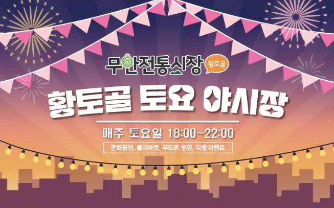 무안전통시장 상인회가 주관하여 매주 토요일(마지막 주차는 일요일) 18시부터 22시까지 총 11회 야시장이 열리며 20여 개의 상가가 참여하며 닭강정, 홍어, 족발, 부침개, 지역전통주 등 다양한 먹거리를 저렴한 가격에 판매한다.