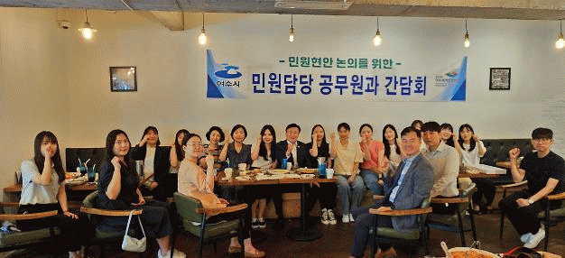 이날 간담회는 본청과 읍면동 민원창구 담당 공무원 20여명이 참여, 민원 담당 근무로 활동이 자유롭지 못한 상황을 감안해 학동 내 한 식당에서 점심시간과 겸해 진행됐다.