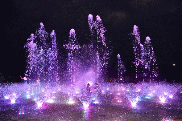 상무평화공원 바닥분수는 음악에 맞춰 조명과 물줄기가 연출되는 ‘음악분수’다.