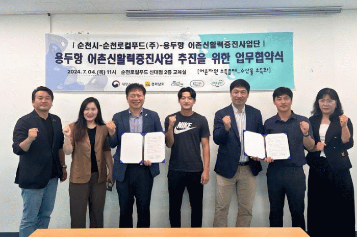 이번 협약은 순천시가 추진하는 용두항 어촌신활력증진사업의 공동 사업시행자인 용두항 앵커조직의 ‘어촌활력 사회혁신실험’ 일환으로 추진된다.