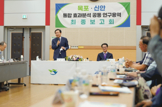 신안군과 공동으로 추진하고 있는 이날 보고회는 박홍률 목포시장, 박우량 신안군수, 목포시?신안군 통합추진(준비)위원, 시.군의회 의원, 공무원, 양 시군 주민 등 100여명이 참석해 진행됐다.