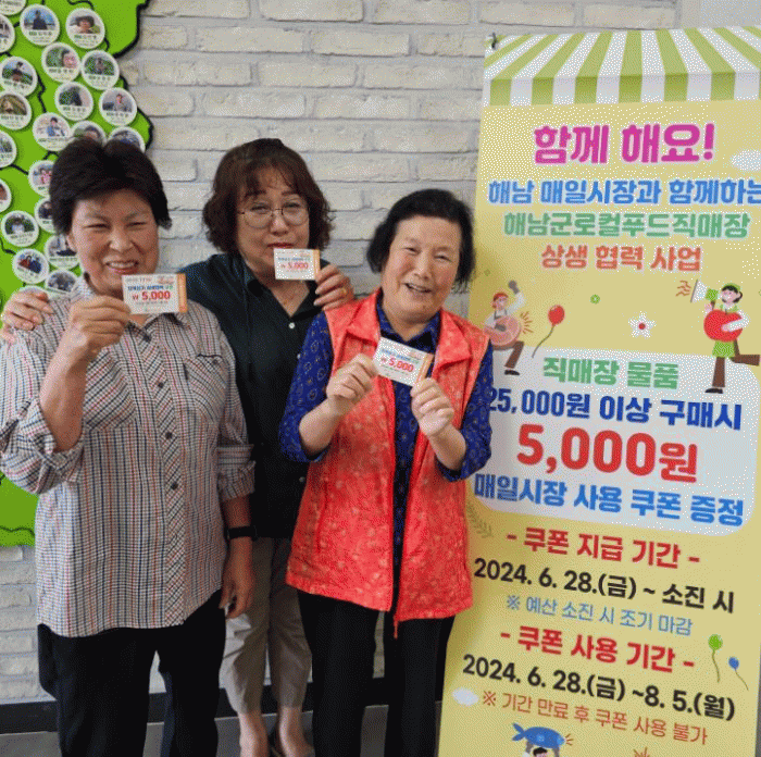 쿠폰은 8월 5일까지 해남매일시장에서 사용할 수 있다.
