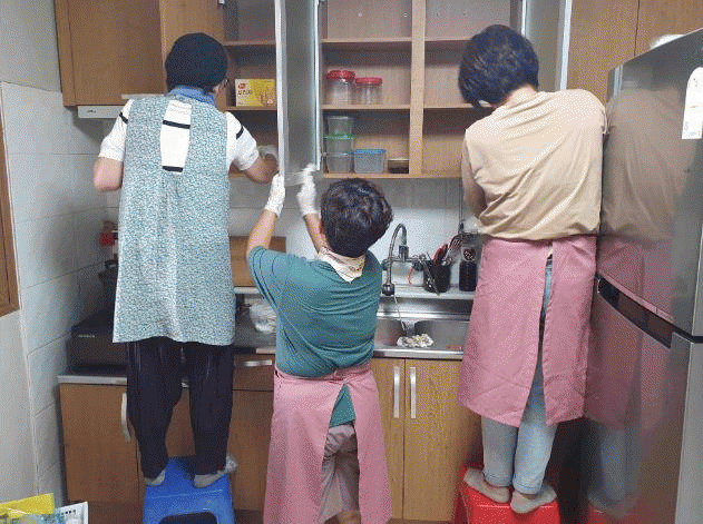 수강생들은 정리수납으로 주방·안방 등 생활 공간을 정돈해 주어진공간을 체계적으로 활용할 수 있도록 돕고, 어르신들이 쾌적한 환경에서 살 수 있도록 꾸몄다.