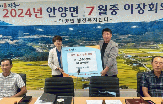 전달된 성금은 안양면 지역사회보장협의체에 기탁되어 지역 내 취약계층을 위한 복지(특화)사업에 사용될 계획이다.