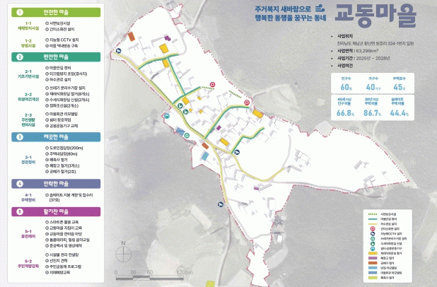 이번 복평마을 사업의 주요 내용은 배수로 정비, 안전 옹벽 설치, 마을회관 및 경로당 리모델링 등을 추진하며, 교동마을 사업의 주요 내용은 하수관로 설치, 재래식 화장실 철거, 마을회관 리모델링 등이 이뤄진다.