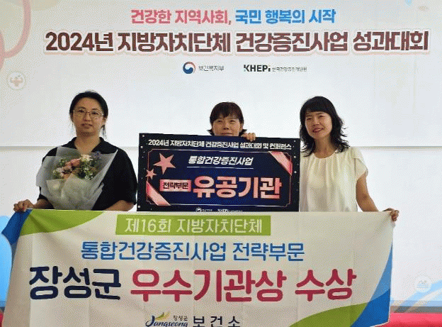 장성군은 △건강한 돌봄 놀이터 △장애인 인지재활 프로그램 △실버 라인댄스 교실 △맞춤형 방문건강 관리사업 △고혈압 · 당뇨병 등록 관리사업 △구강 보건사업△치매 관리 △이동 금연 클리닉 △임산부 · 영유아 건강교실 운영 등의 성과를 인정받아 우수기관에 선정됐다.