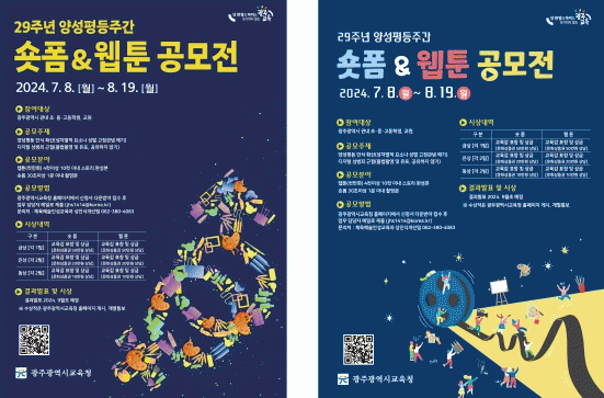 이정선 교육감은 “이번 공모전이 양성평등에 대한 의식을 확산시키고 일상 속에 양성평등이 자연스럽게 스며드는 계기가 되기를 기대한다“고 말했다.