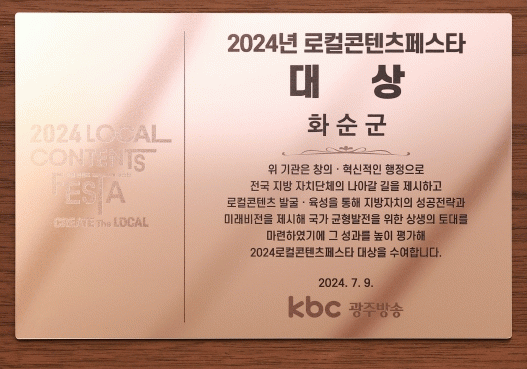구복규 군수는 시상식에서 “앞으로도 지역 콘텐츠 발전의 선두주자가 되어, 화순의 독특한 매력과 자원을 널리 알리는 콘텐츠 개발에 힘쓰도록 하겠다.”라고 말했다.