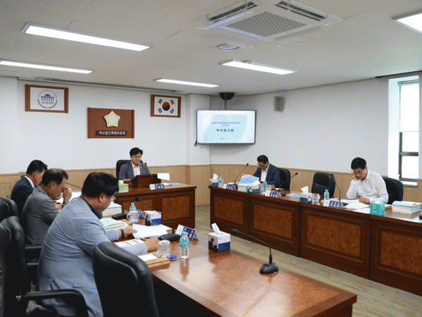 이날 연구용역 착수 보고회에는 군의원 전원과 용역 수행을 맡은 책임연구원, 의회사무과 공무원 등이 참석했다.