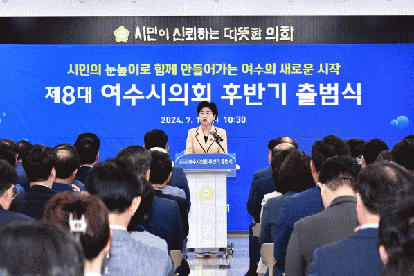 축사를 맡은 정기명 시장은 새롭게 선출된 후반기 의장단에게 축하와 함께 “여수 발전과 시민 행복을 바라는 마음은 하나”라며 “공동 목표를 향한 파트너로서 변함없는 지지와 협력 부탁드린다”고 말했다.