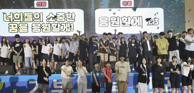 또, 꿈 실현 인생학교 1기부터 4기 참여 학생 및 순천 관내 학생들을 대상으로 한 ‘꿈’ 응원 퍼포먼스가 펼쳐졌다.