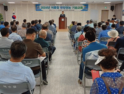 주요 교육내용은 △물관리, 비료 시비, 병해충 방제, 잡초 방제 등 벼농사 재배기술 △고추, 콩, 동부 등 여름철 밭작물 재배기술 △유용미생물 활용교육 등 여름철 영농현장에 적용해야 할 내용들로 구성되었다.